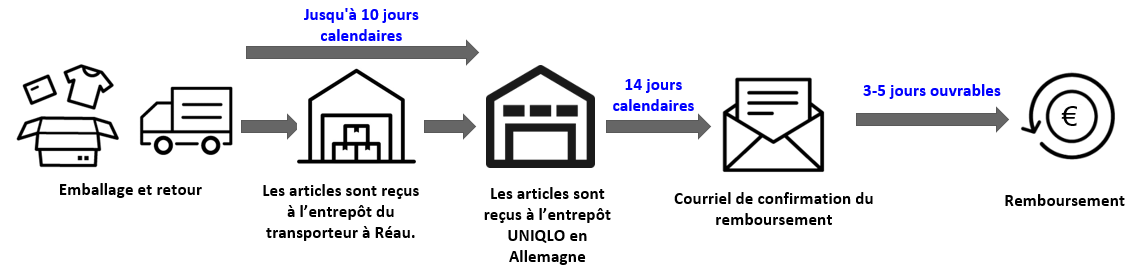 Important: une capture d'écran du suivi ou un email de prise en charge UNIQLO ne sont pas acceptés comme preuve de retour.